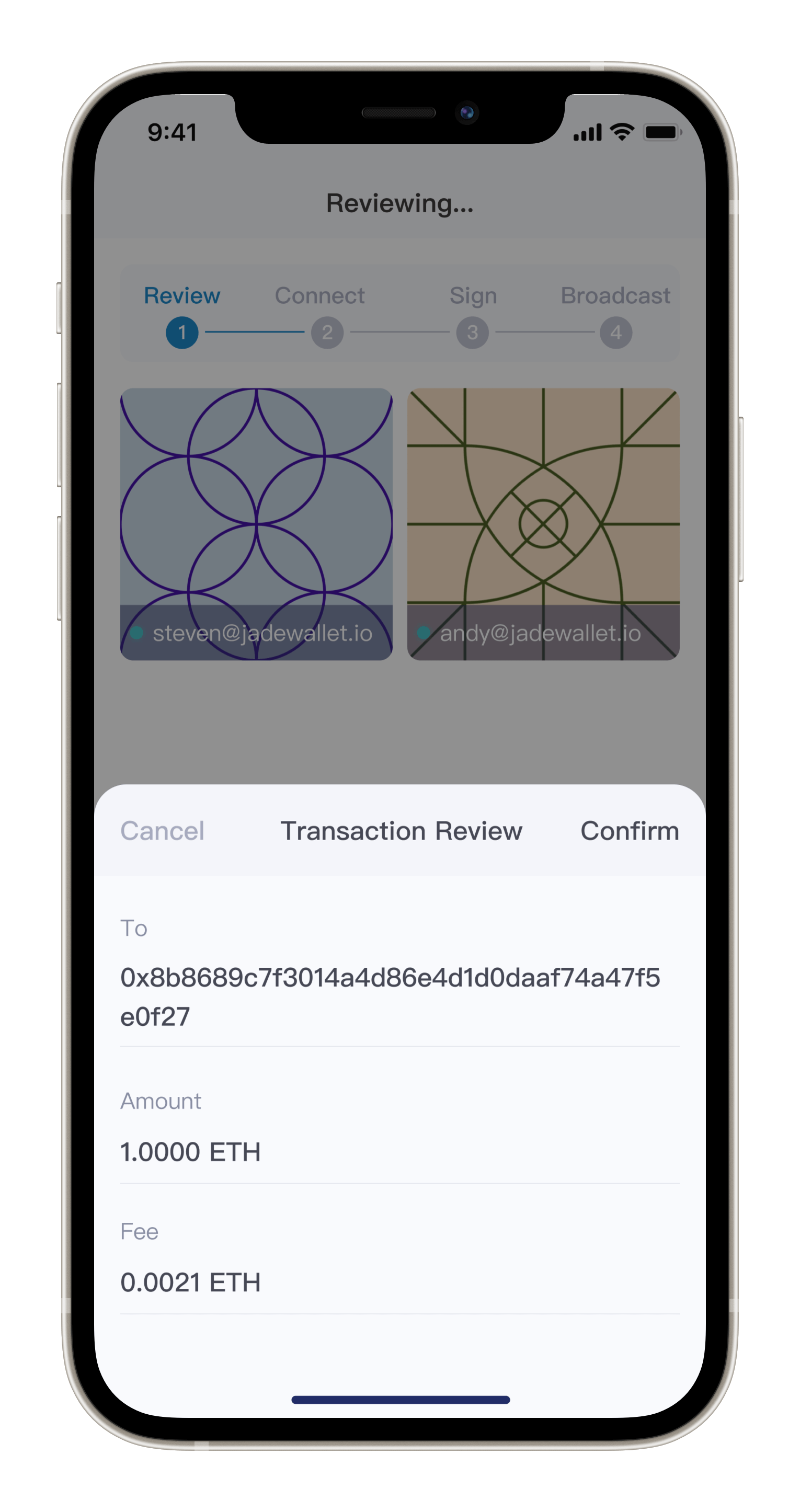 Jade Wallet uses MPC technology to ensure that assets can only be transferred once the required multi-party authorization is met in the wallet. Furthermore, iPhone’s Face ID ensures that no one else can authorize the transaction except you.